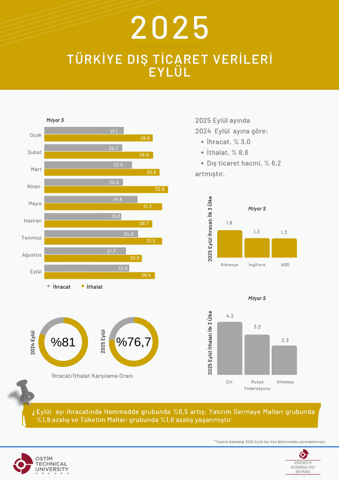 2025 Eylül Türkiye Dış Ticaret Verileri