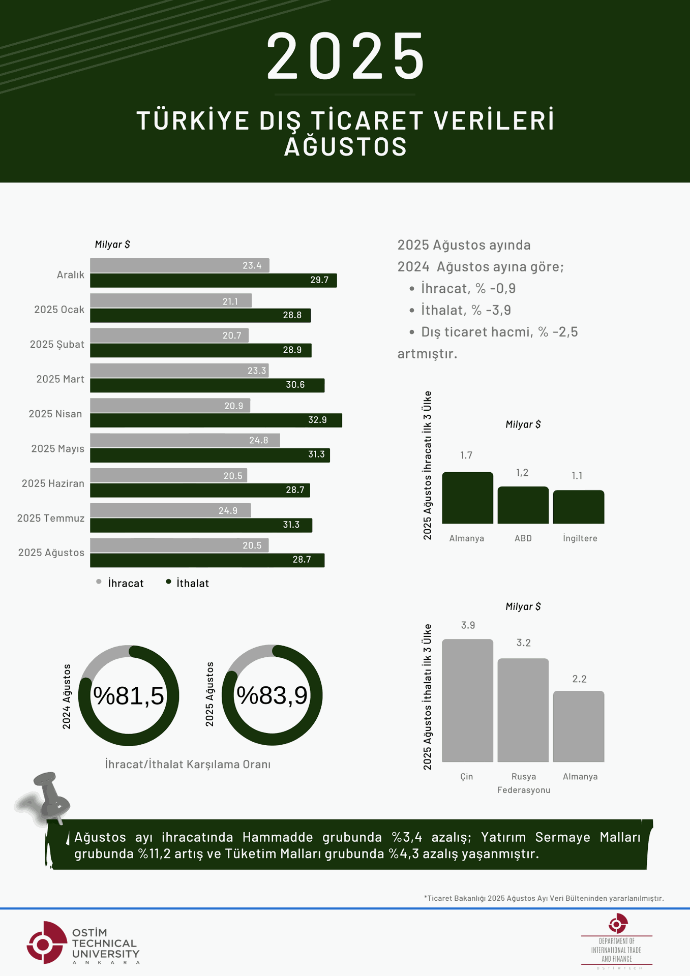 2025 Ağustos Türkiye Dış Ticaret Verileri